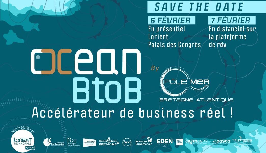 La convention d’affaires Ocean BtoB est organisée par le Pôle Mer Bretagne Atlantique en partenariat avec les réseaux bretons et ligériens : Atlanpole Biotherapies, B2E Bretagne, Biotech Santé Bretagne, Bretagne Développement Innovation (Bretagne Ocean Power et Eurolarge), Bretagne Pole Naval, Bretagne Supply Chain, Eden, Neopolia, Oportunity, Pasca, Photonics Bretagne, et avec le soutien de Lorient Technopole. Retrouvez également l’expertise du Club Partenaires du Pôle Mer Bretagne Atlantique.