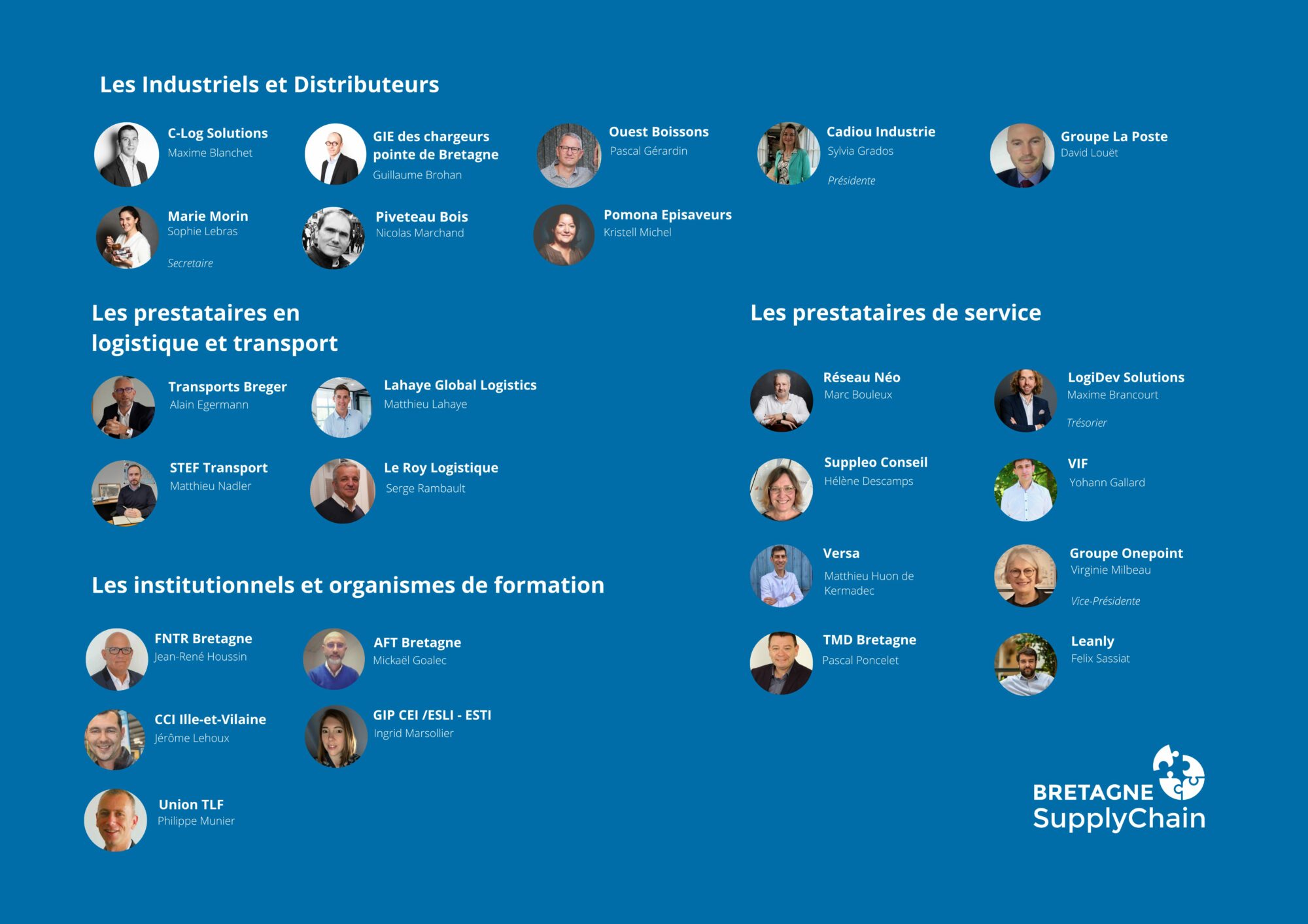Dans un souci de représentativité tant territoriale que sectorielle, le Conseil d’Administration de Bretagne Supply Chain est composé d’acteurs intervenants sur l’ensemble des maillons de la chaîne logistique en Bretagne et issus de toute la région.