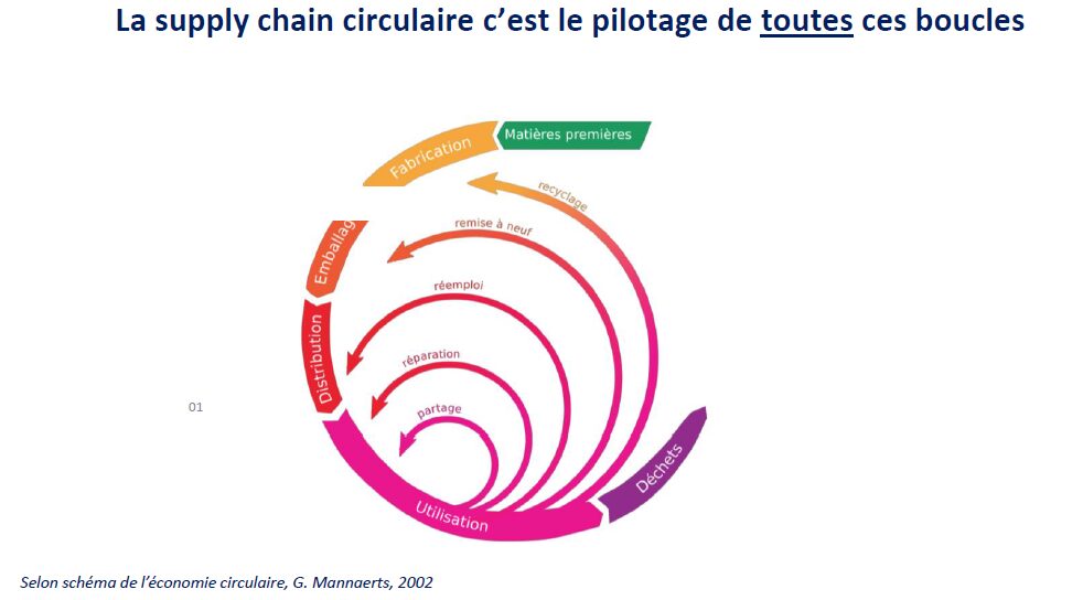 Nous passons d’un flux classique d’une seule boucle à un flux circulaire de plusieurs boucles plus courtes. De ce fait le Supply Chain Manager passe d’un objectif d’optimisation à celui d’orchestration, avec davantage de coopération.