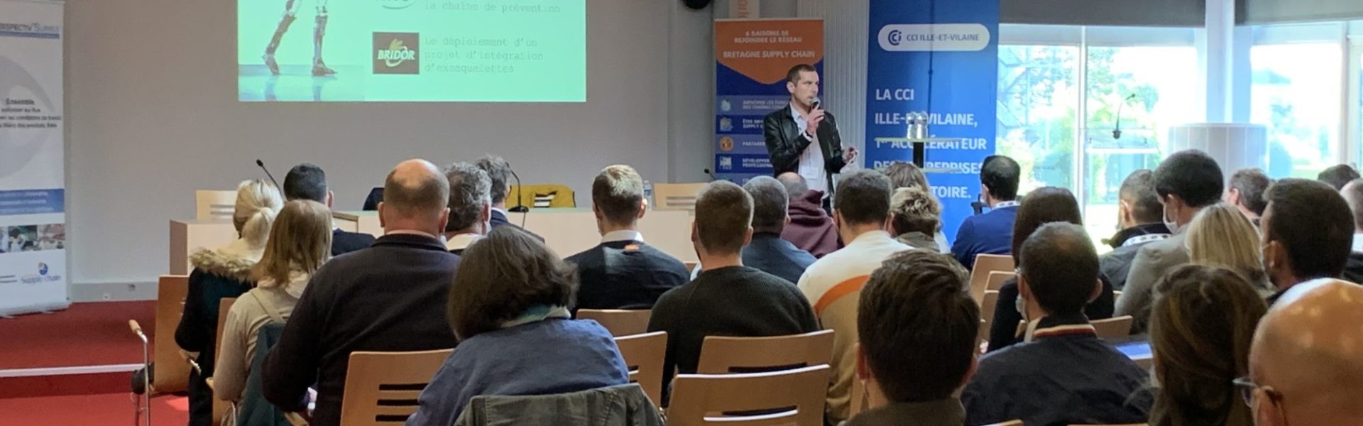 Le mardi 5 octobre, à la CCI Ille-et-Vilaine, avait lieu la Matinale sur la prévention des TMS et sur la place des exosquelettes en entreprise. Plus de 80 personnes pour assister aux interventions de l’INRS, de la Carsat Bretagne et de l’entreprise Bridor.